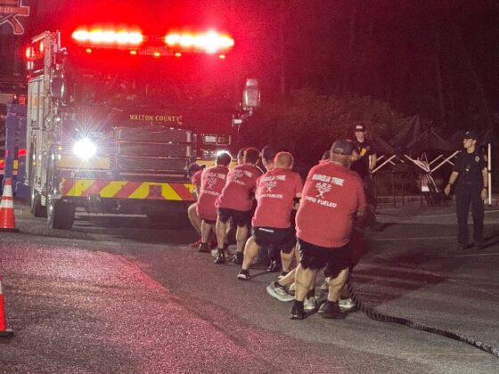 Teams from across Walton County competed for the fastest time pulling a fully loaded fire truck 50 feet down the street in front of Props Brewery at The Windmills in Hammock Bay. The event drew a large and enthusiastic crowd, uniting local businesses, first responders, students, military groups and families in a shared mission of service. Bill Blanken, President of the Freeport Merchants Association was the Master of Ceremonies and Drea Knotts sang the National Anthem.
