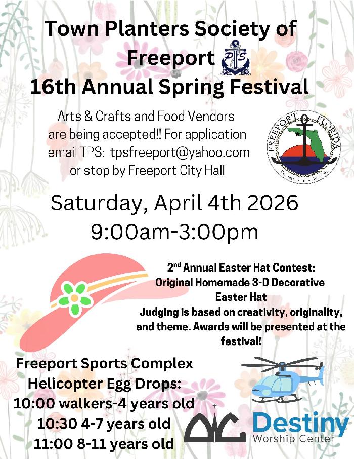 Springtime in Freeport means it’s time again for the 16th Annual Spring Festival hosted by the Town Planters Society of Freeport. The beloved community celebration returns Saturday, April 4, from 9 a.m. to 3 p.m. at the Freeport Sports Complex with a full day of family-friendly fun.