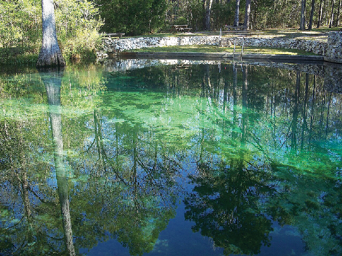 Producing 48 million gallons a day, Morrison Springs is south of Ponce de Leon State Park. There are three cavities into the Floridan Aquifer here, the deepest of which is 300 feet deep. Cyprus knees stand out of the water, but there are no nature trails.