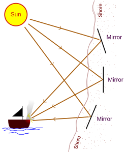 It is also said that Archimedes set up mirrors on the beach to burn up enemy ships using the sun’s rays. You can actually do this at home to start fires, but I might get in trouble if I provide details. It is improbable that he actually did this, but hey, it is a really fun story.